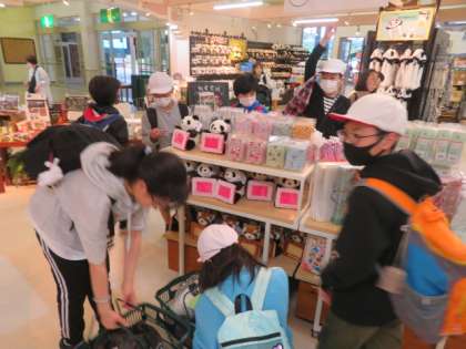 パンダと一緒に記念撮影しました!そのあとは、お土産選びです。