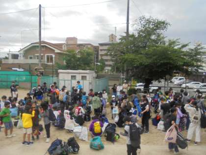 修学旅行からたくさんのお土産をもって6年生が帰ってきました。