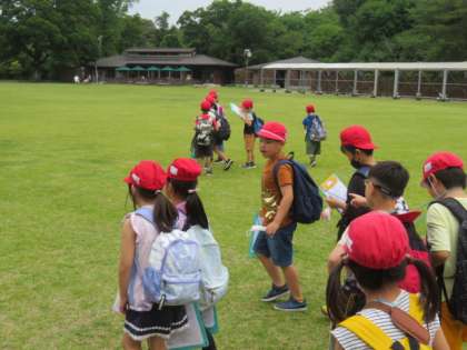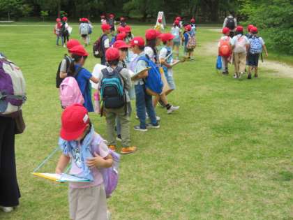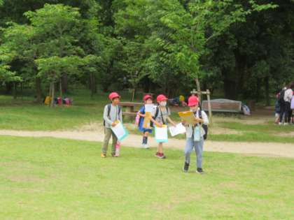 芝生広場からグループごとに、クイズラリーに出発しました!
