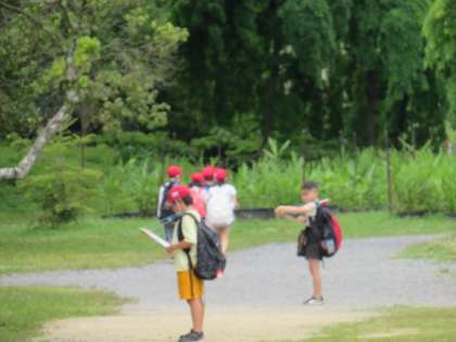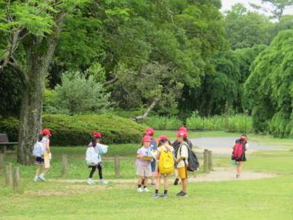 グループで相談しながら、広い植物園をまわっています。