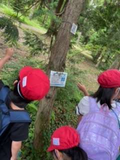 木にかかっている札を読みながら、クイズラリーを楽しみました。