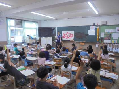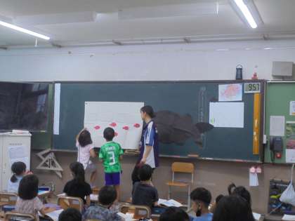 教育実習生による国語科の研究授業を行いました。子どもたちは、場面の様子を思い浮かべて、スイミーの気持ちを考えました。