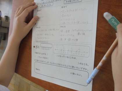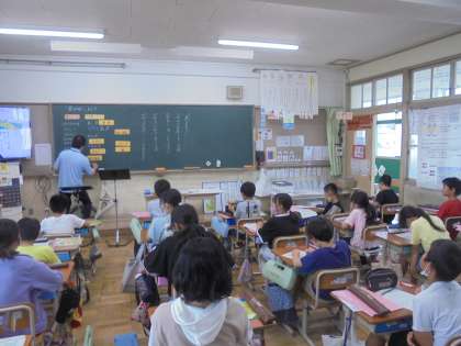 聞き取ったことと感じ取ったことを言葉に表して学習しています。楽譜をよく見て、思いを膨らまし歌っています。
