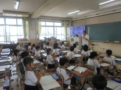 リコーダーの吹き方を練習しました。やさしい音を出すための息の入れ方を学習しました。