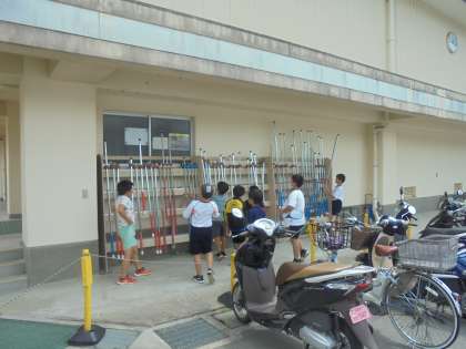 竹馬を低学年の分まで、きれいに片づけていました。遊んだ後の片付けを人の分まで片付け、気持ちよい状況を保とうという気持ちは、学校のお手本です。