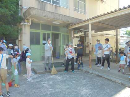 今年度のネイチャーランド清掃では、80名ほどの参加がありました。初めに挨拶と本日の作業についての説明があり、清掃作業を開始しました。