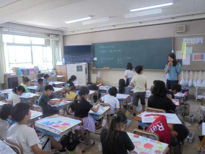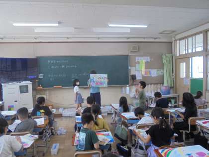 あじさいと自分を描きました。色合いを考えながら絵具で色を付けました。