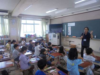リコーダーで、タンギングを確認しながら吹いています。リコーダーに吹き込む空気の量が上手になり、よい音が出るようになってきました。