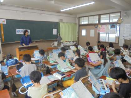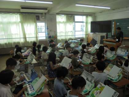 鍵盤ハーモニカで、よい音色を出すことができていました。みんなで合わせてすばらしい音でした。