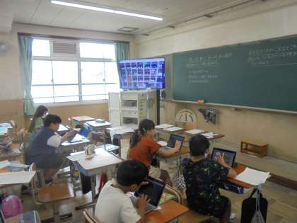 身の回りのものを写真に撮って、絵を付け足して作品作りを楽しみました。できた作品は、ロイロノートで共有しました。