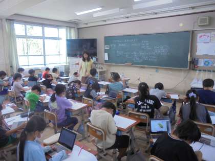 お話を聞いて、登場する動物などの様子、周りの様子を思い浮かべて、言葉や絵で下描きメモをかきました。