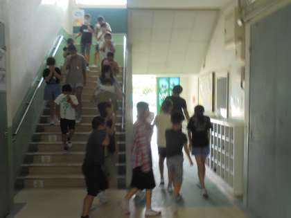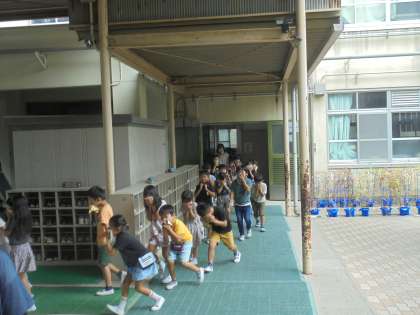 口を手でおさえながら、子どもたちは静かに非難することができていました。