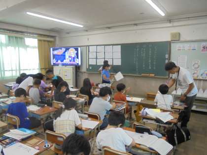 物語を読んで、全体をとらえ、キャッチコピーを考えています。