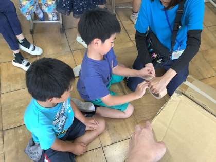 早速キャタピラーを作って順番に遊びました。