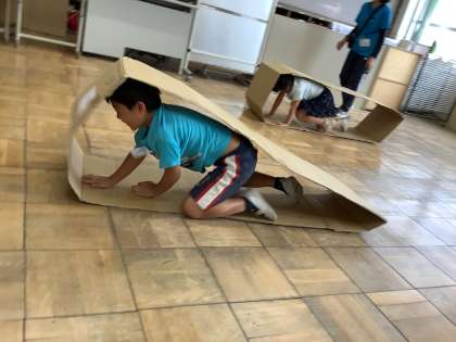 大きな大きな段ボールを使ってどんな遊びができるかを考えました。