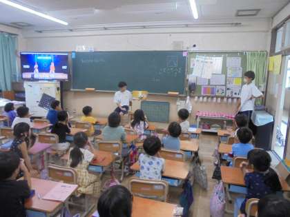 チャレンジ体験に来ていた子どもたちが読み聞かせをしていました。