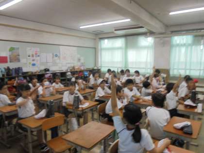運動会の色ごとに分かれて、団体競技のかけ声をどのようにするか話し合いました。たくさんの意見が出てきました。