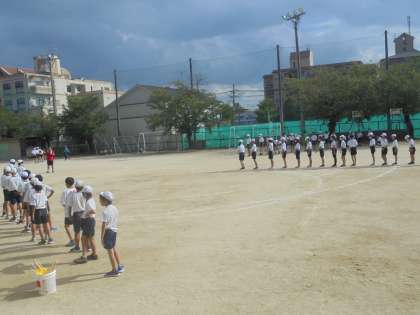 運動会に向けて、運動場で練習を頑張っています。