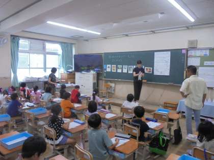教育実習生による生活科の授業が行われました。子どもたちは、アサガオの成長する様子を思い出しながら、ワークシートに書いていました。