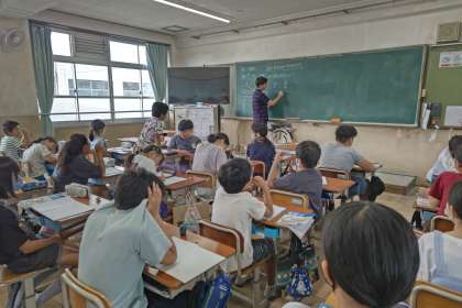 教育実習の先生が進める分数の学習でした。約分の意味とその仕方を学びました。