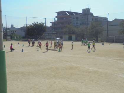 グループでバトンパスの練習の工夫をしています。それぞれで、練習を頑張っていました。