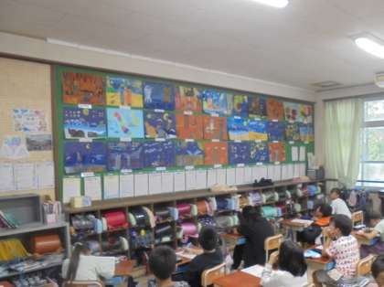 お話の絵の鑑賞を行いました。子どもたちは、みんなの絵の良さをそれぞれ見つけていました。