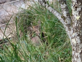 いよいよスコアオリエンテーリングですが、その前に冒険の森のところで、野生のシカを発見しました。