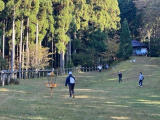 雨が上がり、フライングディスクゴルフを行いました。