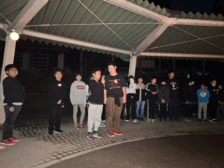 終わりの言葉でキャンプファイヤーを終えました。この後は、宿泊棟に戻り、振り返りを行います。