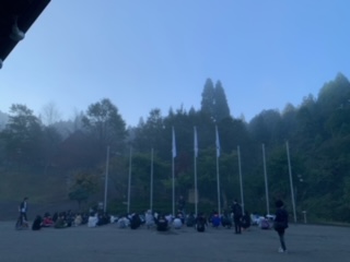 山の家の最終日の朝の集いの様子です。今日も天気がよさそうです。