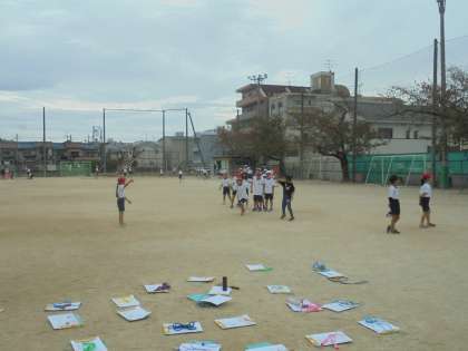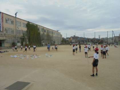 なわとびの学習で、八の字をしました。友達と声をかけあって取り組んでいました。