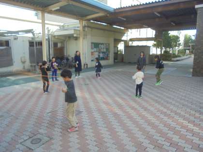 朝の1時間目は縄跳びを頑張っています。それぞれの個人の縄跳びとみんなでの八の字を頑張っています。