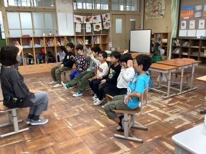 手話の動きを楽しみながら「おおきなうた」を歌っています。