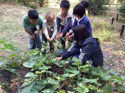 どこにかくれているかな?と探しながら,つるを引っ張ったり土を掘ったりしました。
