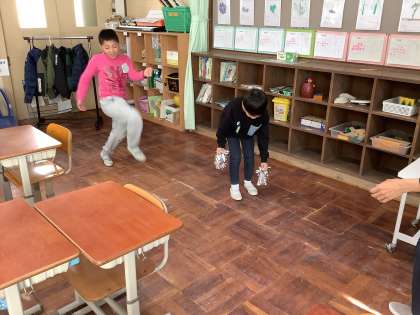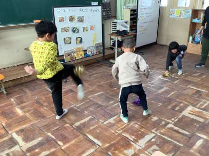 韓国や北朝鮮でのあいさつの言葉を聞いたり,どんな食べ物があるかを写真で確認したりしました。「チェギ」という遊びにもみんなでチャレンジしました。