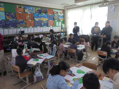 アリの行列を読んで、文章のあらすじをつかみ、お互いに伝え合いました。