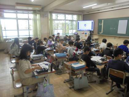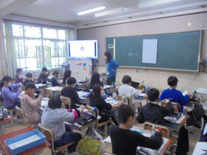 書写の学習をしています。はね・はらいに気を付けてかいています。姿勢よくかくこともできていました。