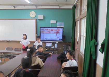 各教室でもオンラインで配信しました。子どもたちは、お話に笑いながら楽しむことができました。