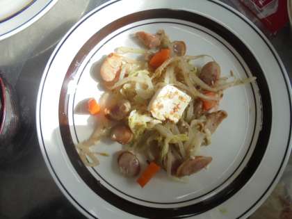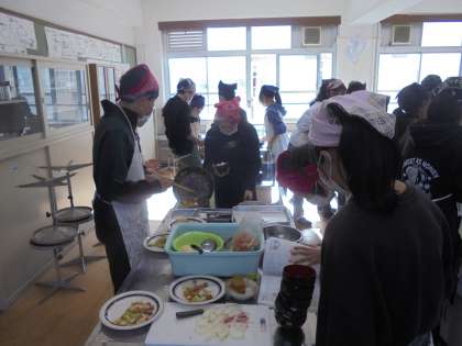 教科書を見て確認し、材料を入れる順番を確認してグループで調理しました。とってもきれいな盛り付けがありました。
