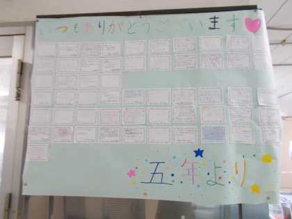 サービスホールに掲示しているメッセージは、各学年、それぞれの思いのこもった素敵なものとなりました。