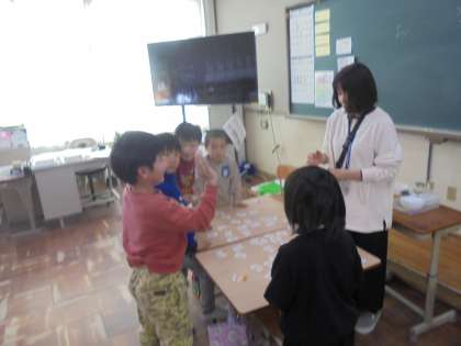 言葉の神経衰弱を行いました。言葉を合わせてカードを取ることができていました。