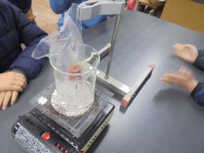 沸騰して出てきた泡を袋に集めて、それが何なのかを調べることができました。