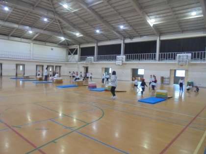 いろいろな跳び方で、とび箱を跳んで活動しています。