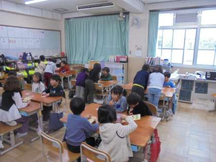 子どもたちは色の英語表現をしっかりと覚えてやり取りをしていました。