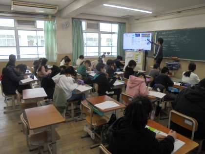 鴨川をきれいにするために、京都市の取組について学習しています。