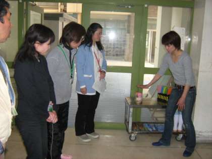 昨日,新着の教職員は,給食の取りにいき方,返し方を