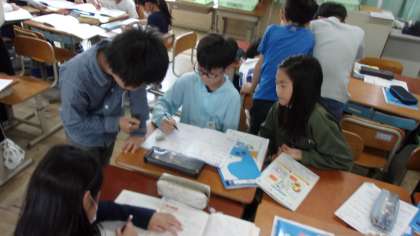 算数の時間に単元の復習をしました。わからないところを先生や友だちと教え合ったり、計算問題の復習プリントに取り組みました。