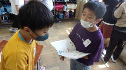 お互いの好きなものを英語で尋ね合いました。何度も言葉にして練習しています。