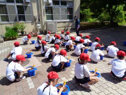 今日はあさがおのたねを植えました。教えてくださったとおりに、人さし指で穴をあけ上手にたねを植えることができました。その後、肥料をまいて水をあげました。これからは毎朝水やりをします。きれいなあさがおが咲くといいですね!