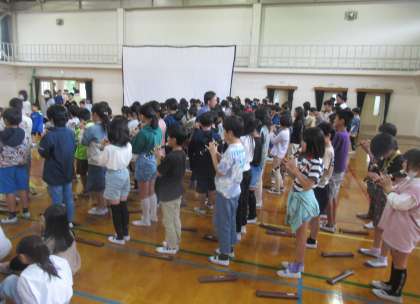 1年生を迎える会があり、5年生は入場の曲をリコーダーで演奏しました。素敵な音色が体育館中に響き渡っていました。